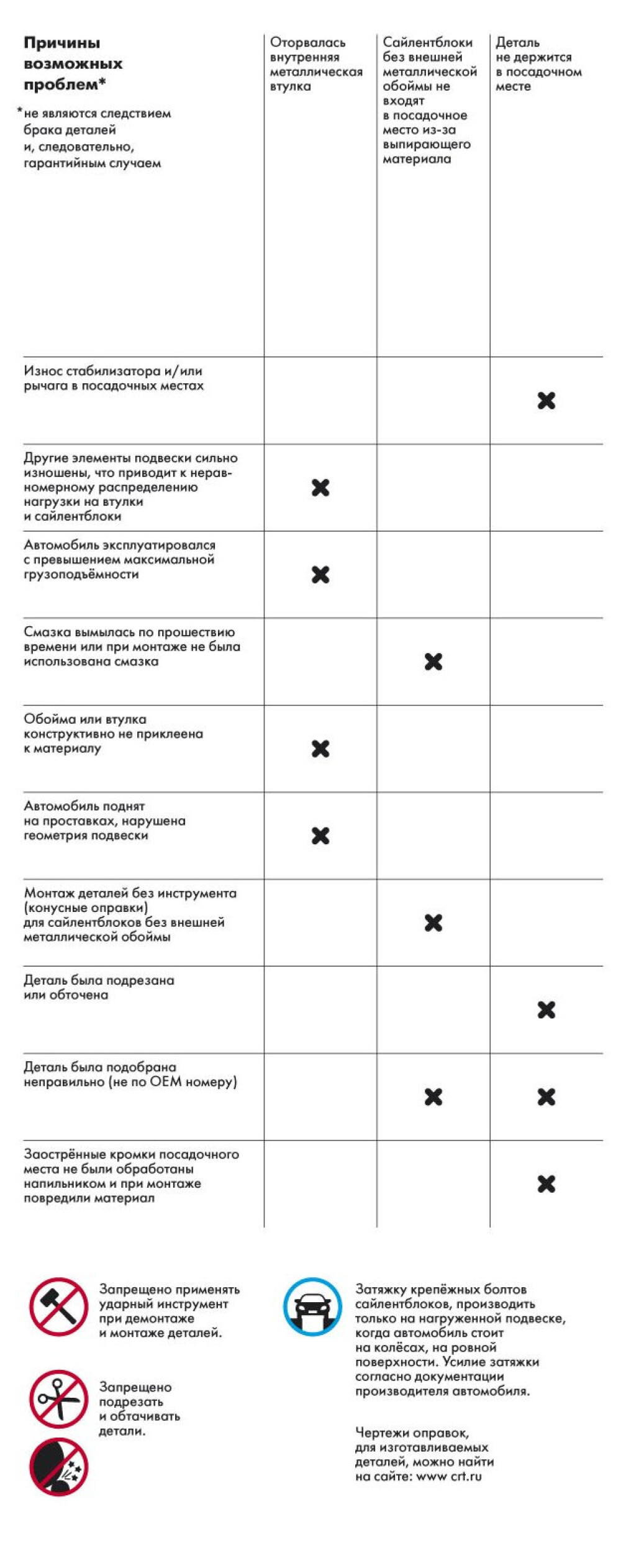Внимание! После замены сайлентблоков обязательно проведите регулировку углов установки колёс (развал/схождение).