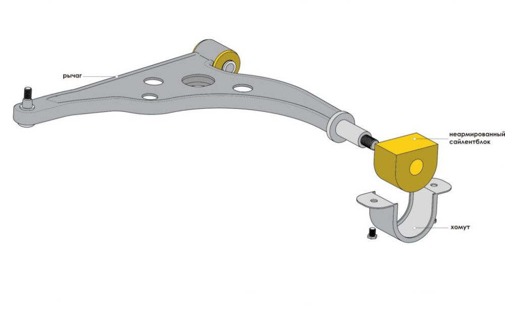 Внимание! В некоторых деталях Точка Опоры, в сравнении с оригинальными, изменена конструкция. Например, оригинальный сайлентблок имеет внутреннюю металлическую втулку, а в исполнении Точка Опоры может производиться без неё. При этом диаметр внутреннего отверстия сайлентблока меньше диаметра посадочного места на рычаге, что позволяет, благодаря упругой деформации тела сайлентблока, зафиксировать рычаг. Данные изменения позволяют наиболее полно использовать свойства эластомера.